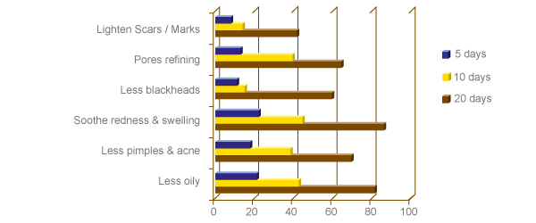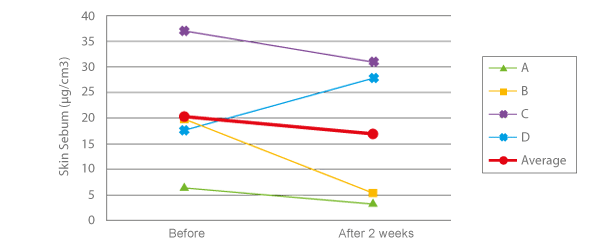 They were given extract 50 mg/day orally for 2 weeks, and measured using SEBUMETER SM810. Average sebum production around eye area was reduced about 16% within testing period.
